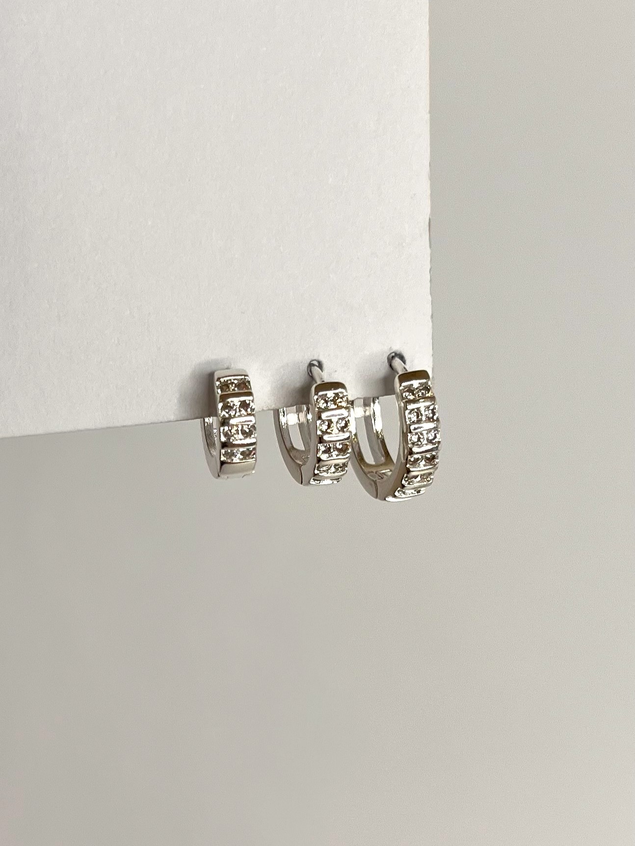 Argola Ângela, trio de argolas com dois fios cravejados de zircônia cristal em duplas,cada par é vendido separadamente.