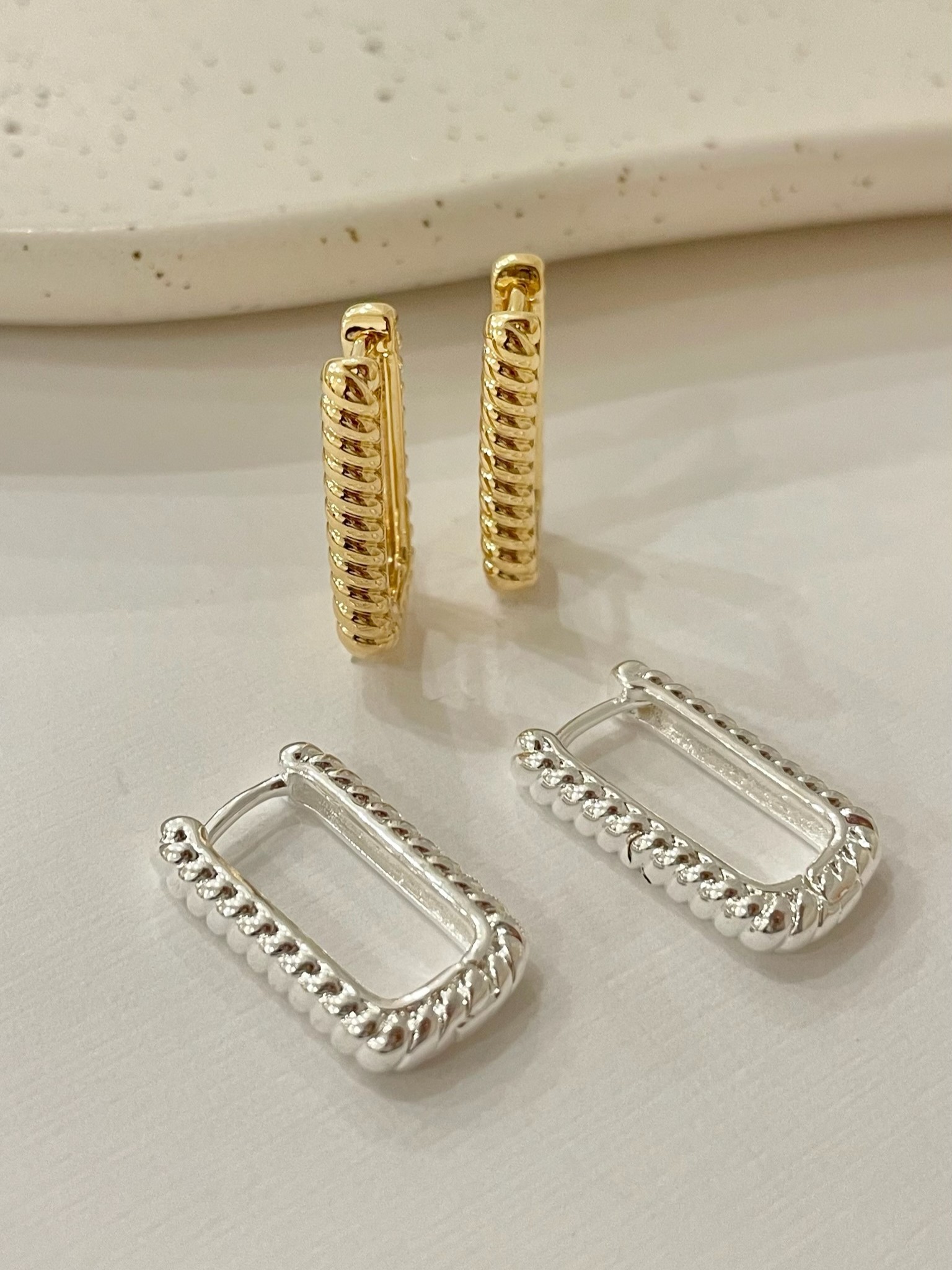 Argola Aria, peça média em formato retangular com listras e fechamento em click.