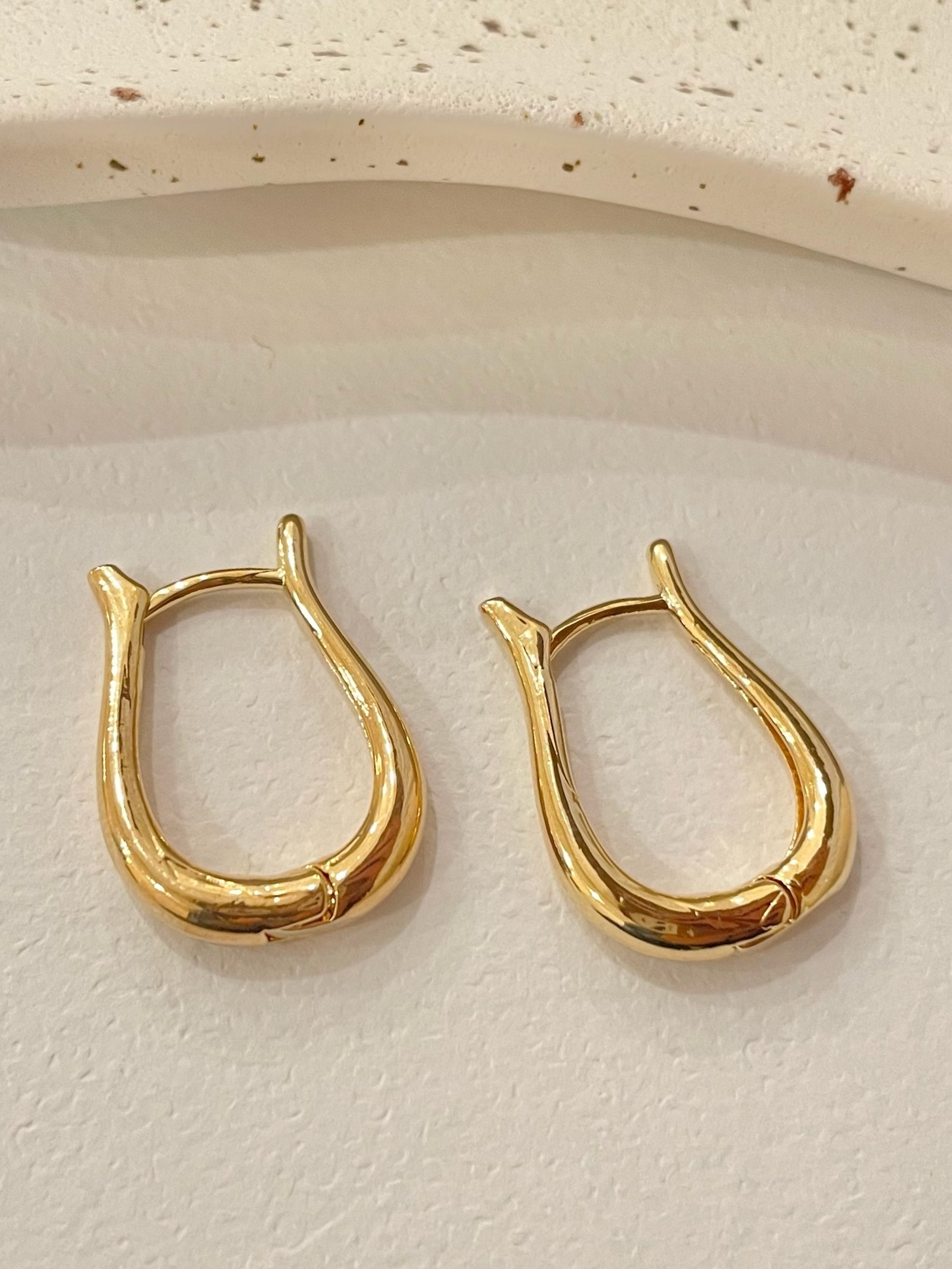 Argola Raiany, peça média em formato de U com o pino deslocado, possui fechamento em click, minimalista ela é perfeita para o dia a dia.