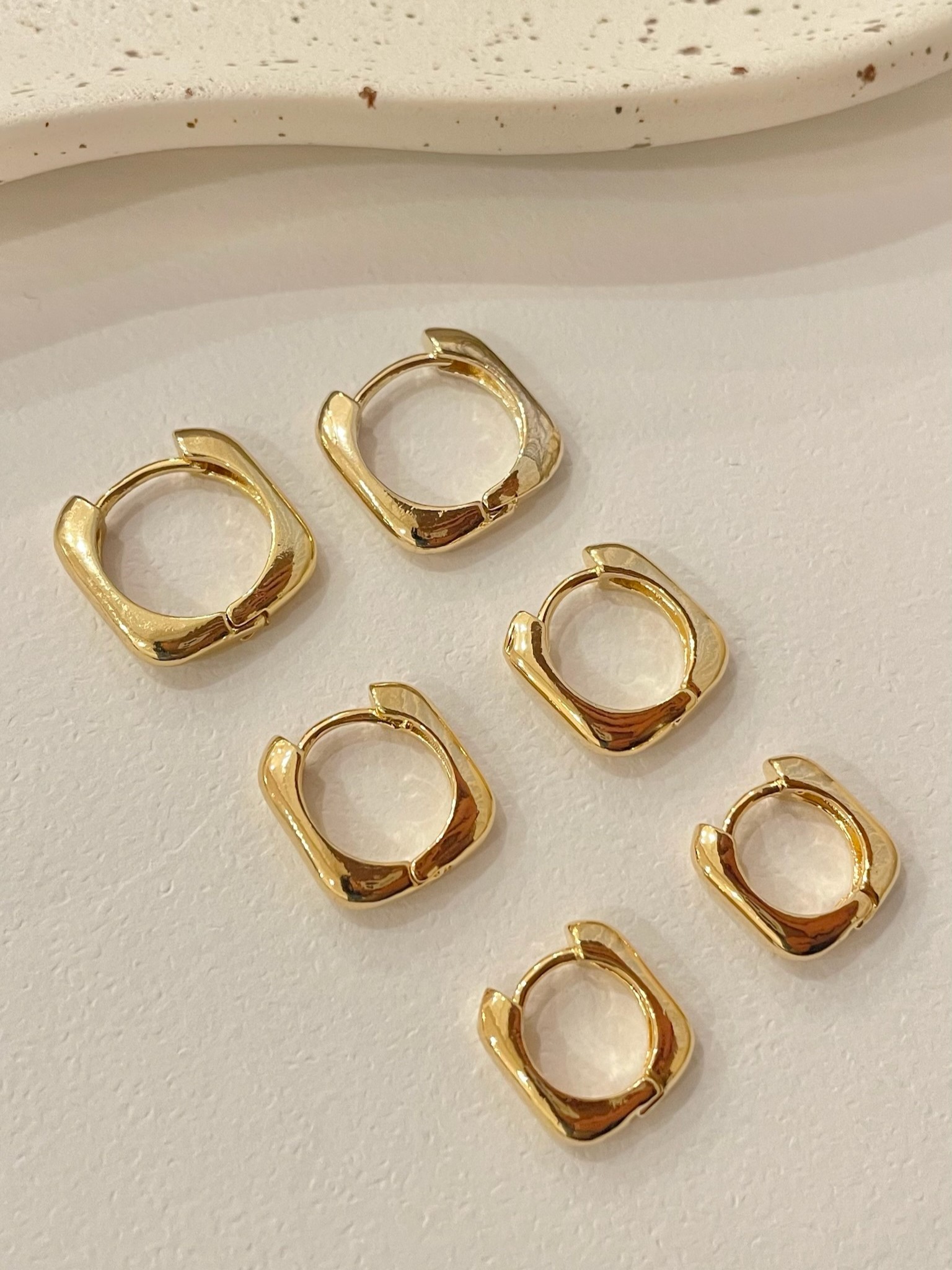 Argola Suzana, trio de argolas quadradas lisa com círculo no meio, fechamento em click, possui três tamanhos e cada par é vendido separadamente.
