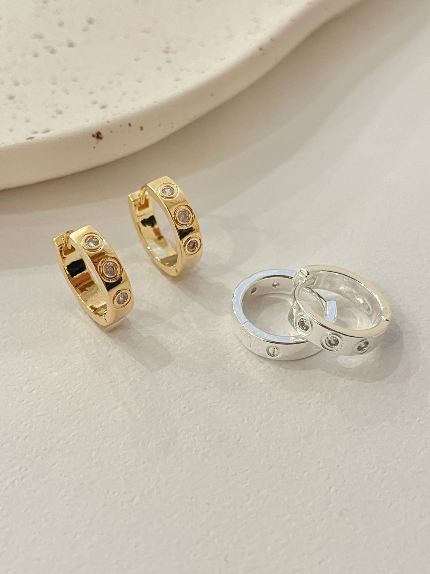 Argola Yohana, peça pequena com três pontos de luz cristal, possui fechamento em click, minimalista ela é perfeita para o dia a dia.
