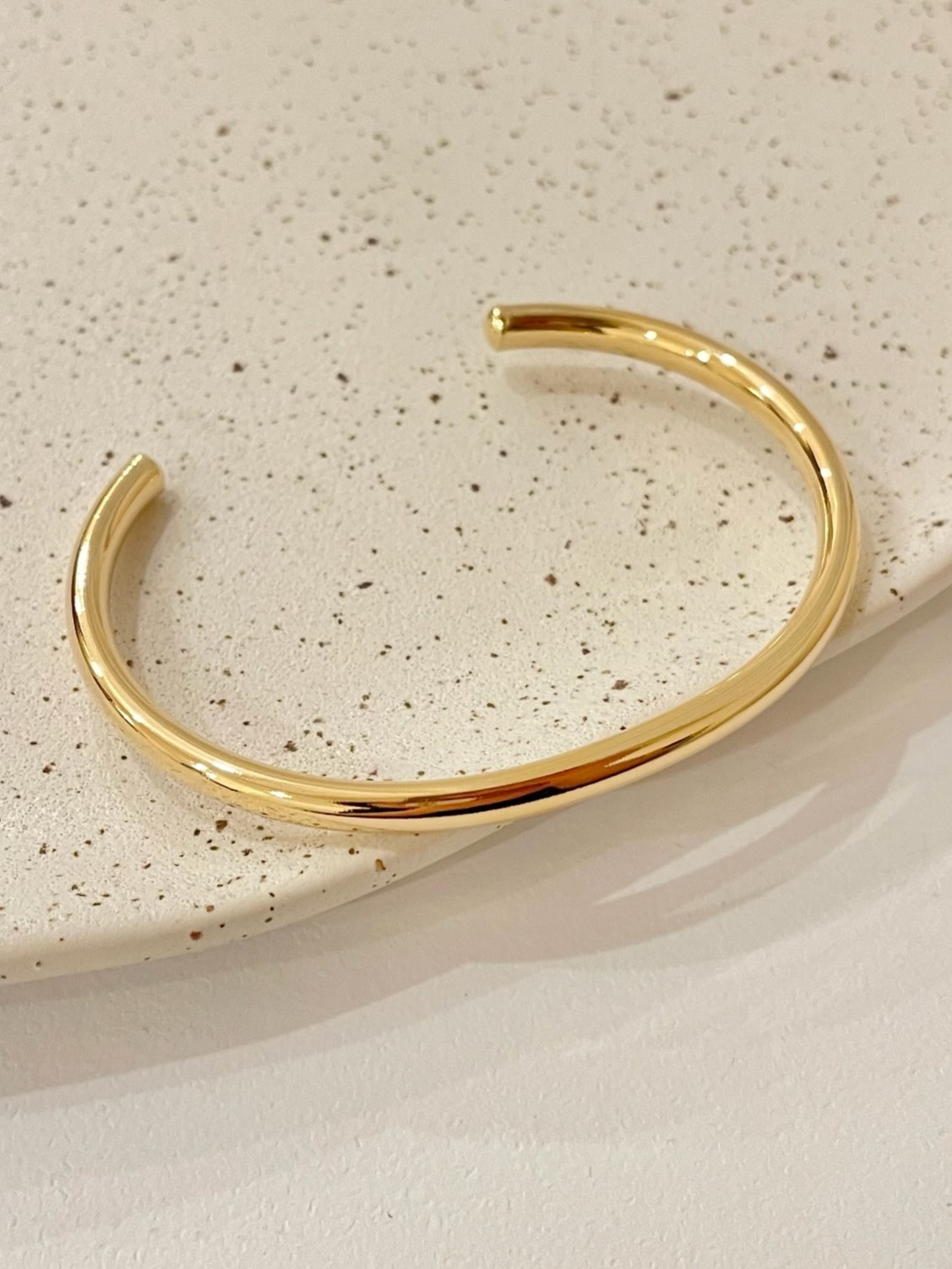 Bracelete Vicky, peça minimalista e versátil, com formato de tubo oval oco e liso, ela é perfeita para qualquer ocasião. Peça maleável, pode se adaptar ao seu punho/braço.