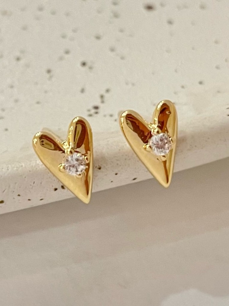 Brinco Cristina, peça pequena com formato de coração com ponto de luz no meio, fechamento em tarraxa.