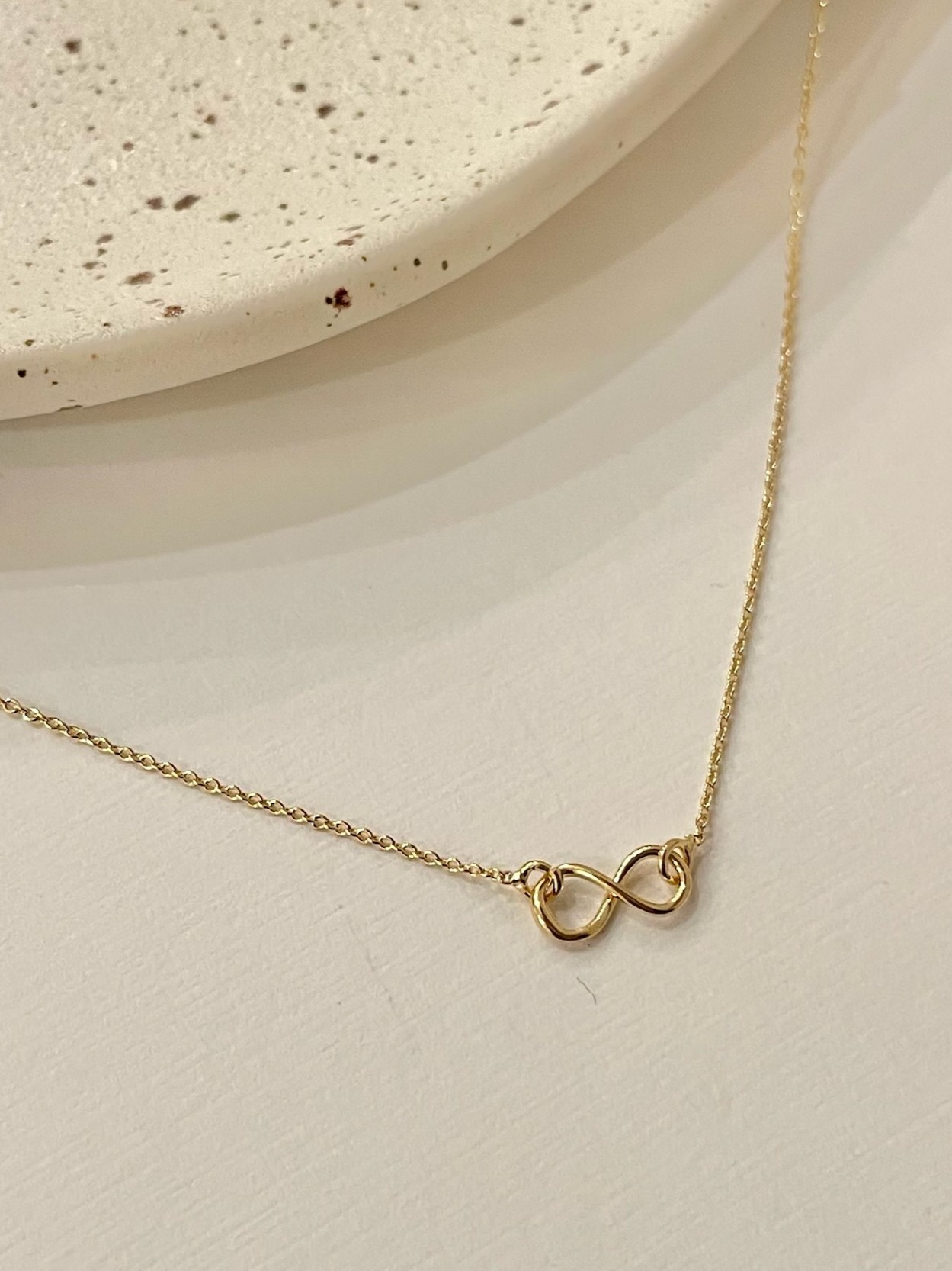 Choker Antônia, peça com mini elos e um pingente do símbolo do infinito, possui 39 cm de comprimento + 5 cm de extensor.