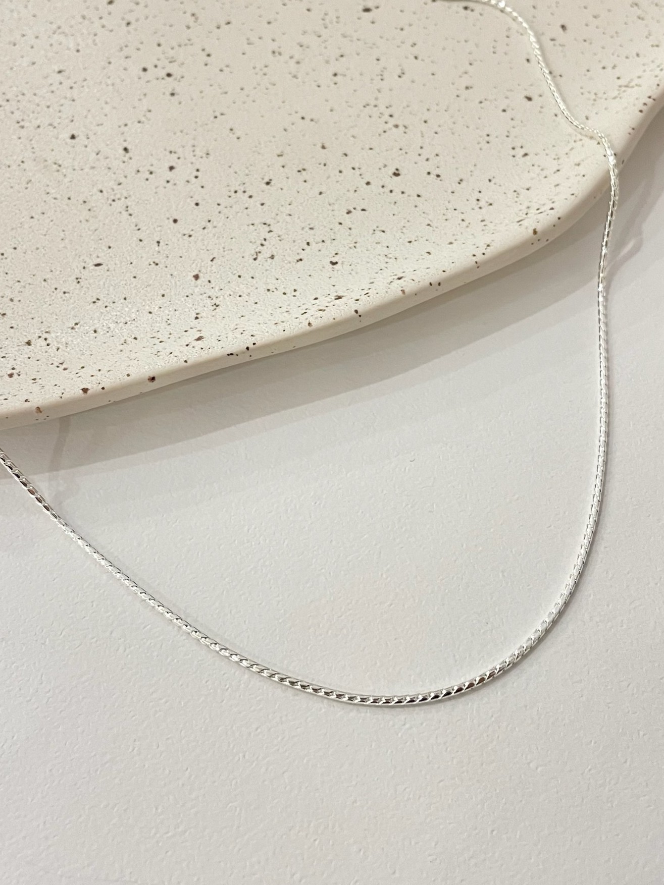 Colar Elis, peça em formato de fita fio torcido, possui 45 cm de comprimento e não possui extensor.