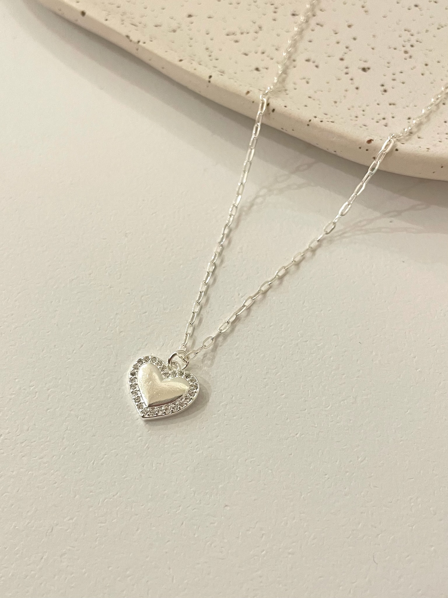 Colar Graziela, peça com elos mini e pingente de coração com as bordas cravejadas, possui 45 cm de comprimento + 5 cm de extensor.