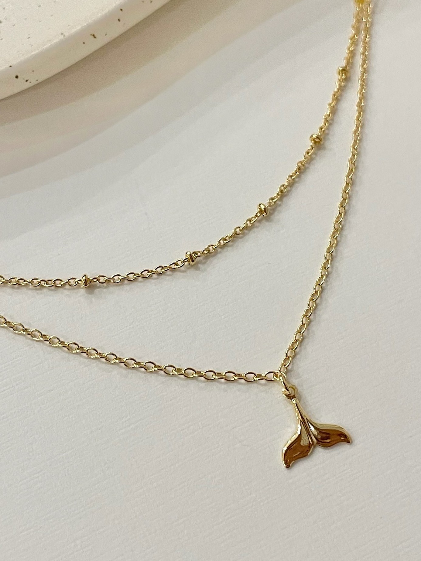 Tornozeleira Dupla Rabo De Baleia, peça dupla com mini elos com bolinhas + mini elos com pingente de rabo de baleia, possui 22,5 cm + 5.5 cm de extensor permitindo a regulagem.