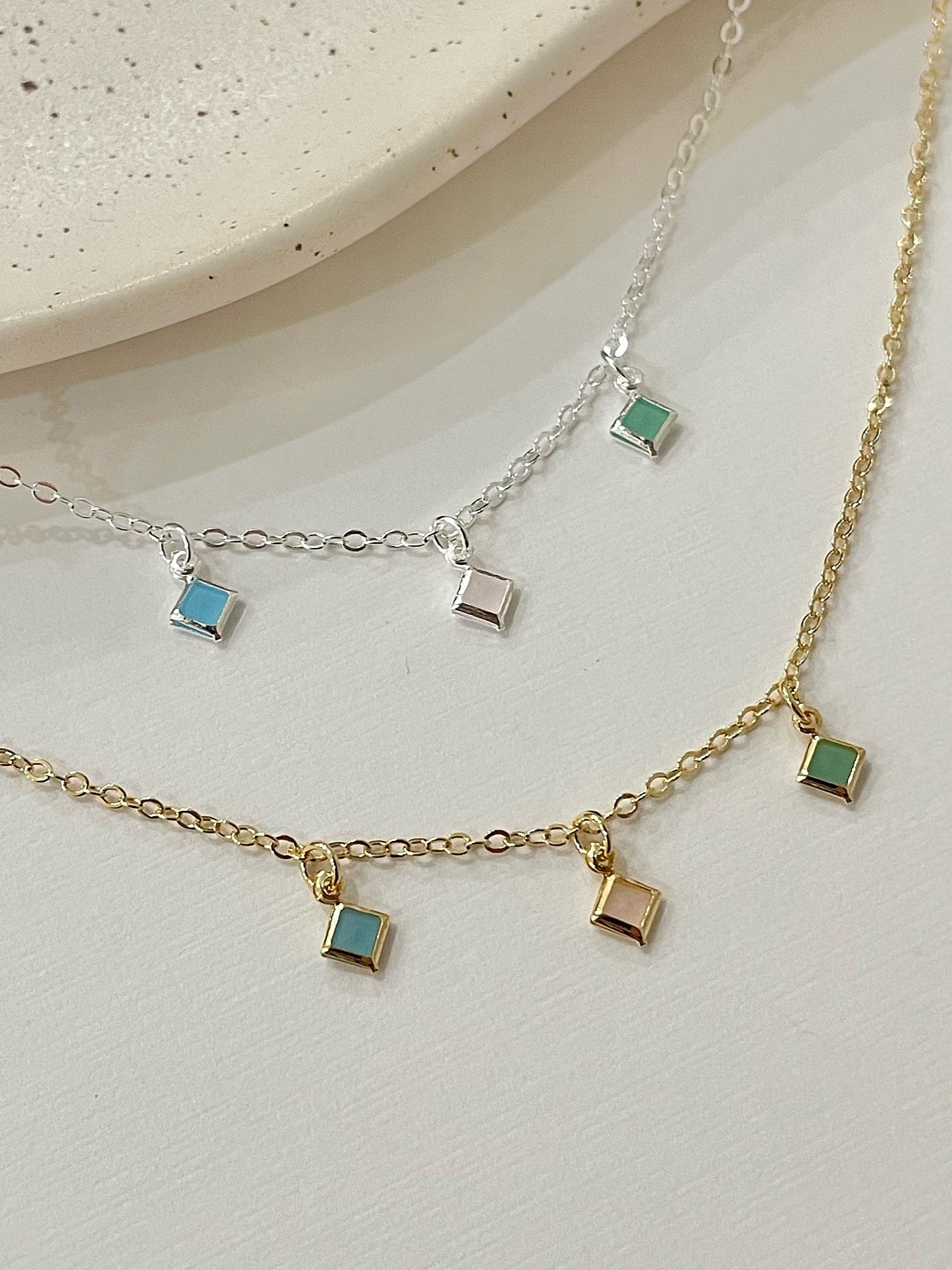 Tornozeleira Mini Elos Com Pingentes Candy Colors, peça com mini elos e 3 pingentes candy colors, sendo verde, rosa e azul, possui 24 cm + 4 cm de extensor permitindo a regulagem.